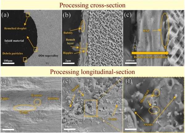 中國科學院寧波材料技術與(yu) 工程研究所浙江省航空發動機極端製造技術研究重點實驗室和寧波大學機械工程與(yu) 力學學院的科研人員報道了水導激光加工DD6單晶高溫合金的表麵質量分析研究。東(dong) 北大學材料科學與(yu) 工程學院、南京中科煜宸激光技術有限公司、蘇州中科激光智能製造創新研究院及沈陽工業(ye) 大學機械工程學院的科研人員報道了水導激光加工DD6單晶高溫合金重熔層的分析研究。相關(guan) 論文分別以“Surface quality analysis of waterjet-guided laser processing DD6 single-crystal superalloys”、“Analysis of remelted layers of DD6 single-crystal superalloys by water jet-guided laser processing”為(wei) 題發表在《Materials Today Communications》、《Journal of Alloys and Compounds》上。