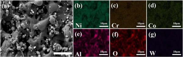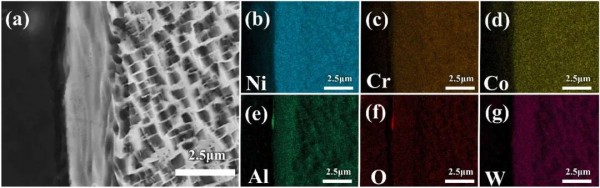 圖13水導激光加工鎳基單晶高溫合金縱截麵的元素分布