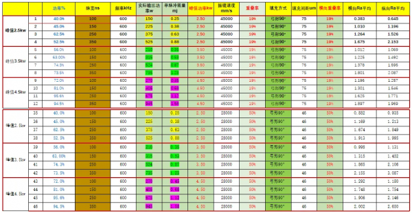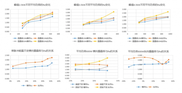 1、平均功率對Ra的影響:峰值功率不變,平均功率增加,Ra值隨之增大