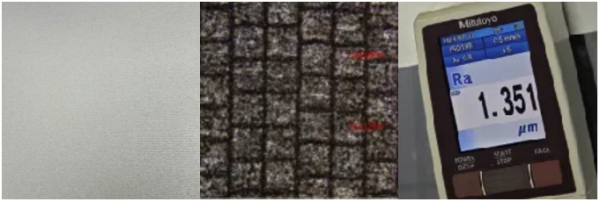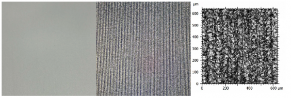激光毛化是利用高能脈衝(chong) 激光在電池殼表麵形成微米級粗糙結構的過程。當激光照射到材料表麵時,材料吸收光能,使部分材料氣化,導致材料表麵形成微小的凹凸結構。激光毛化技術的效果受多種參數影響,包括激光平均功率和峰值功率,脈衝(chong) 頻率,脈寬,振鏡速度,光斑形狀等,在使用過程中,通過對各影響因子的控製,可以實現對Ra值的精準調節,滿足不同塗覆材料的需求。