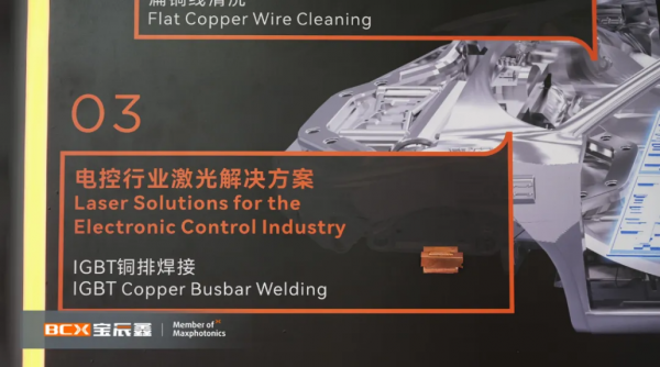 采用寶辰鑫扁銅線激光除漆方案,可快速去除絕緣漆層,400V扁銅線在1s內可完成,800V扁銅線在2s內可完成表漆去除。IGBT是新能源汽車電控係統的核心組件之一,其焊接麵臨著精度要求高、焊接材料和工藝複雜等難點。寶辰鑫針對IGBT焊接應用難點,推出了一站式的IGBT激光焊接解決方案,提供定製激光器、振鏡焊接頭、控製係統等。客戶可根據實際應用需求,進行方案的靈活配置。其中,在激光器的選擇上,根據銅排的厚薄,可選擇單模激光器、環形光斑激光器或超高功率激光器。新能源行業作為前沿技術領域,代表著產業先進的發展方向。寶辰鑫始終致力於激光技術在新能源等細分領域的應用發展,始終以行業需求痛點和產業創新前沿為導向,不斷以更新的激光技術和更優質的產品方案,助力產業進階發展。