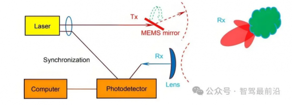 lMEMS 技術:基於(yu) MEMS 的固態激光雷達利用微振鏡來改變單個(ge) 發射器的發射角度進行掃描,通過懸臂梁在橫縱兩(liang) 軸的高速周期運動,改變激光的反射方向,從(cong) 而形成麵陣掃描視場。雖然 MEMS 技術中存在微小的機械運動部件,但與(yu) 傳(chuan) 統機械式激光雷達的大型旋轉部件相比,其結構得到了極大簡化,體(ti) 積更小,可靠性更高。