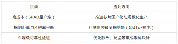 Flash激光雷達:通過麵陣激光一次性照射場景,適合補盲應用,但受限於(yu) SPAD探測器量產(chan) 進度,成本較高。