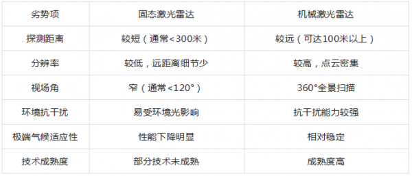 視場角較小:固態激光雷達的視場角通常較窄,難以實現360°全景掃描,而機械激光雷達可以通過旋轉部件實現大範圍掃描。