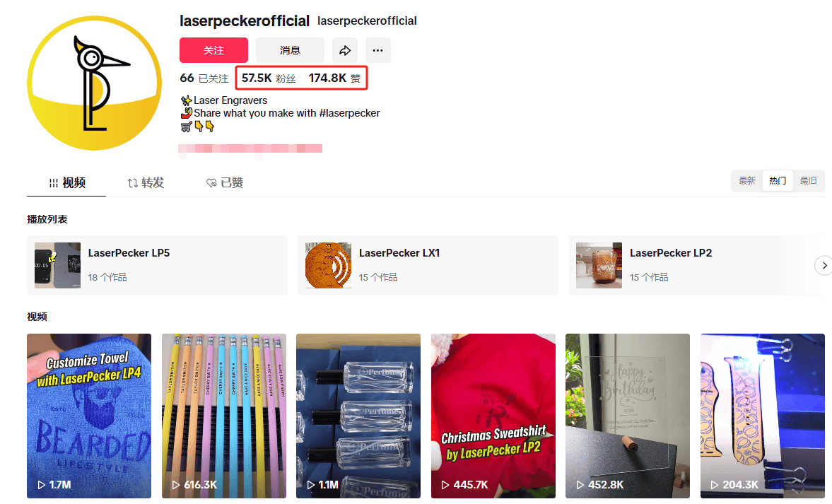 與(yu) 此同時,LaserPecker在社媒布局上也沒少花心思,特別是TikTok,團隊將此平台作為(wei) 核心營銷陣地,通過內(nei) 容運營、達人合作和精準投放的組合策略,實現了品牌影響力的快速提升。