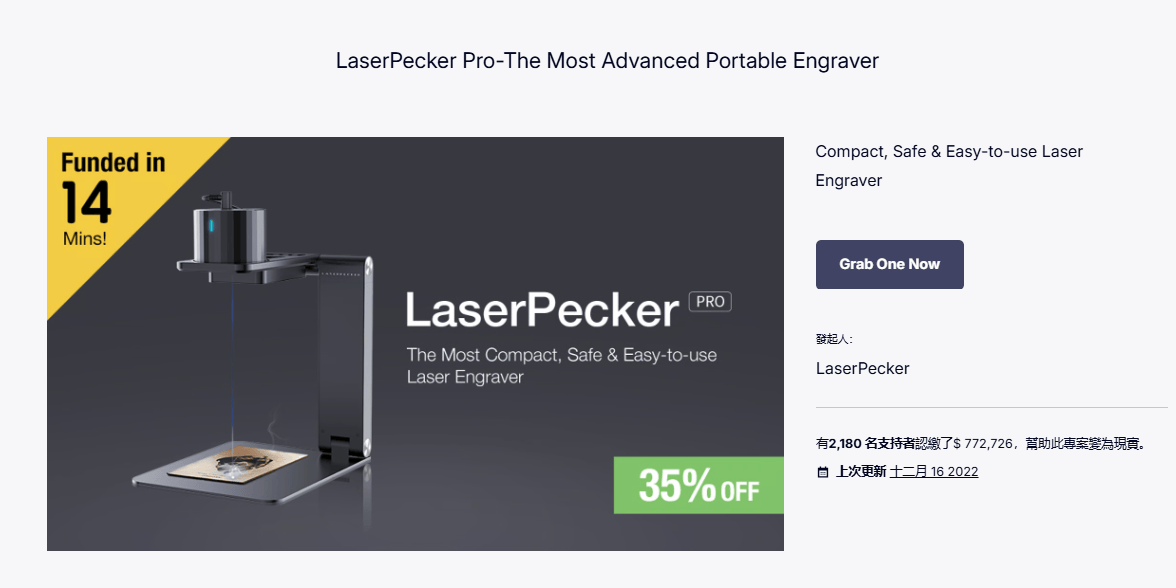 2020年,該品牌迎來重要突破。其第二代產(chan) 品"Laserpecker2"在Kickstarter斬獲592萬(wan) 美元,成為(wei) 當年該平台科技類目的眾(zhong) 籌冠軍(jun) 。這款產(chan) 品後續在Indiegogo、日本Campfire和台灣嘖嘖平台分別獲得144萬(wan) 、139萬(wan) 和116萬(wan) 美元支持,總募資額突破1000萬(wan) 美元。