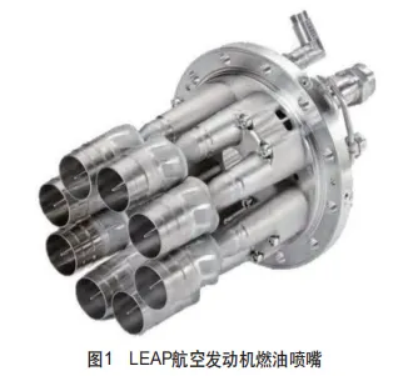 (1)航空航天工業(ye) :在航空航天工業(ye) 中,基於(yu) 激光的增材製造被用於(yu) 生產(chan) 渦輪葉片和燃油噴嘴等複雜部件。例如,選區激光熔化用於(yu) 生產(chan) 具有複雜內(nei) 部冷卻通道的鈦渦輪葉片,從(cong) 而提高噴氣發動機的性能和效率。增材製造的使用還減少了材料浪費和交貨時間,從(cong) 而節省了成本並提高了生產(chan) 效率。西門子能源公司使用激光增材製造來生產(chan) 燃氣輪機旋轉器。圖1所示為(wei) 通用電氣采用激光增材製造生產(chan) LEAP航空發動機燃油噴嘴,相較於(yu) 傳(chuan) 統機械加工,噴嘴的製造時間縮短至原來的1/3,且零部件重量降低了25%。