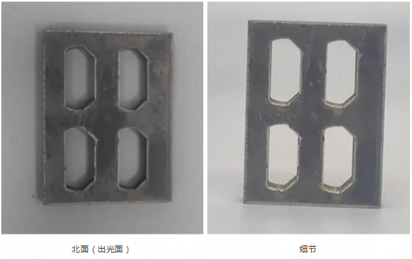 工藝驗證:不同厚度碳化矽切割實例 1、2mm碳化矽切割 加工圖形:六邊形,外接圓φ25mm,中心圓孔為(wei) φ5mm 加工效率:切割速度約為(wei) 3mm/s,單件總加工時間2分30秒 加工效果:切縫均勻、無明顯崩邊或熔瘤,邊緣整潔 2、4mm碳化矽切割 加工圖形:外形尺寸為(wei) 38 mm × 50 mm,內(nei) 孔尺寸為(wei) 8 mm × 18 mm 加工效率:切割速度為(wei) 2 mm/s,總加工時間約13分鍾 加工效果:切割麵穩定,邊緣整齊,正反麵質量一致 3、7mm碳化矽切割 加工圖形:外形尺寸為(wei) 15 mm × 25 mm,孔徑為(wei) 6 mm 加工效率:加工速度保持在1 mm/s,實現厚件高效加工 加工效果:錐度小,可切小孔 4、11mm碳化矽切割 加工圖形:外形尺寸為(wei) 100mm直線 加工效率:加工速度依然保持在1 mm/s,實現厚件高效加工 加工效果:直線切割,斷麵垂直