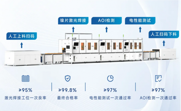 某客戶現場 天弘激光自2022年向某特斯拉核心供應商客戶成功交付CCS激光焊接自動化產(chan) 線,我們(men) 已持續向該客戶交付5條產(chan) 線投入量產(chan) 。 天弘激光CCS焊接自動線解決(jue) 方案: 1超精度焊接: ±0.05mm激光定位,鎳片熔深一致性達99.5% 2四維AOI質檢: 3D形貌重建+2D8K線掃,虛焊/爆點檢出率100% 3零秒電性能測試: 毫秒級導通檢測攔截微短路隱患 成果:良率躍升至99.8%,運維成本降低40%,獲特斯拉“零缺陷供應商”認證。 總結