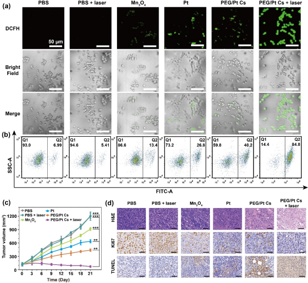 Pt Cs在小鼠體(ti) 內(nei) 的光催化腫瘤治療