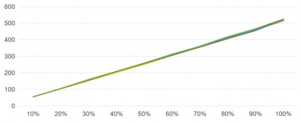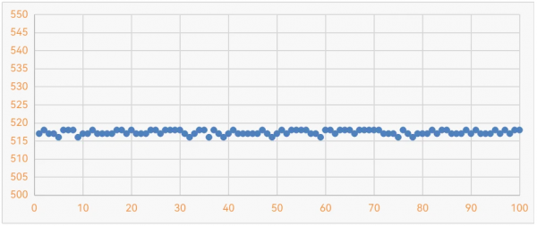 激光功率的一致性及多批次激光器的功率一致性,是穩定的激光能量的基礎。通過產(chan) 線隨機拉取的百台光源的功率數據顯示,寶辰鑫3D打印專(zhuan) 用激光器的功率穩定在515至520之間,並可根據客戶需求設置一定量的功率餘(yu) 量,以確保不會(hui) 受長期使用之下功率衰減的影響。