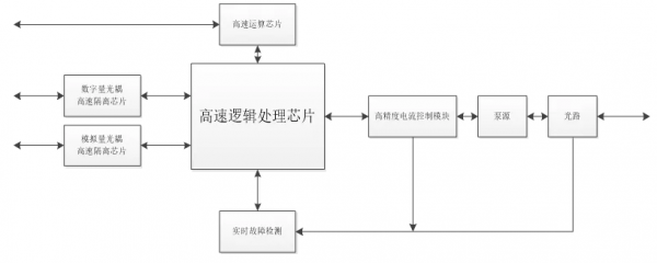 輸入輸出接口則采用高速的數字量和模擬量隔離光耦,由此保證激光器控製的高速與(yu) 一致性。同時配合高精度電流控製模塊,保證光源供電的穩定性,從(cong) 而實現輸出激光功率的高穩定性。