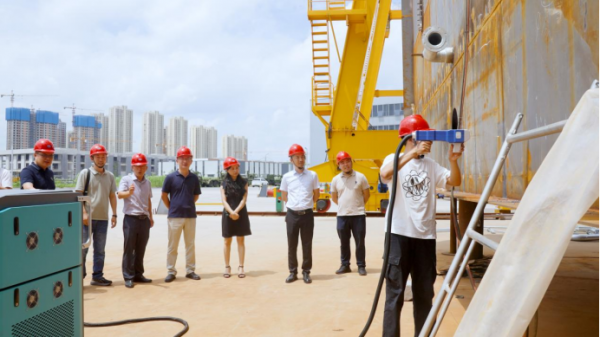 2025年7月8日-9日,安徽省淮河船舶檢驗局聯袂上海海事大學、聖同智能激光裝備集團(簡稱:聖同激光集團),深入蚌埠神舟機械、淮河造船廠、南京寶源船舶工程等標杆企業(ye) ,開展“綠色船舶激光清洗技術”現場實操示範應用。