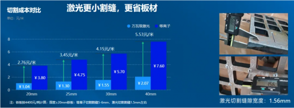 2025年上半年,銳科激光在鋼構行業(ye) 銷售額同比增幅達63%。數據的背後,是萬(wan) 瓦級激光器在鋼構加工中“精度+效率”雙重優(you) 勢的集中爆發。具體(ti) 以銳科20kW及以上激光器對比市麵上300A等離子而言,效率、成本優(you) 勢尤為(wei) 明顯: