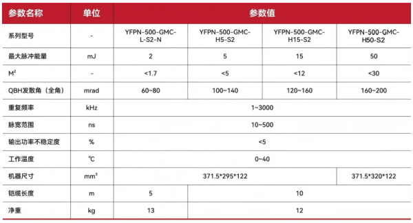 02、S2係列產(chan) 品核心參數 光至科技S2係列清洗激光器提供多款型號,支持客戶按需靈活選型: