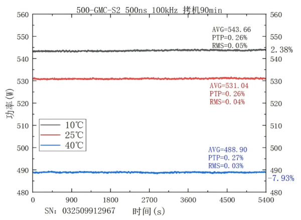 GMC-S2 500W 5mJ 光束質量測試 GMC-S2 500W 5mJ 不同環境溫度下功率穩定性測試 GMC-S2 500W 5mJ 350ns 105kHz 脈衝(chong) 穩定性測試