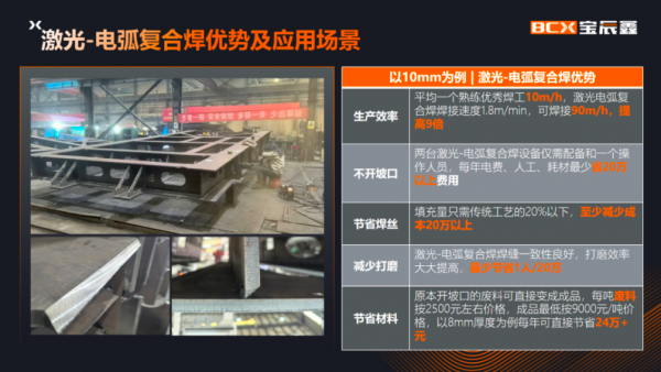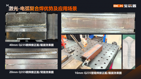 在“極大”維度,寶辰鑫重點展示了其厚板複合焊接解決(jue) 方案。該方案深度融合激光與(yu) 電弧複合工藝,有效解決(jue) 了船舶製造、重型機械、能源裝備等大型結構件在厚板焊接中麵臨(lin) 的熱輸入控製難、變形量大、效率低下等痛點。憑借高功率、高穿透力與(yu) 高穩定性的特點,該方案顯著提升了大型工件焊接的效率和品質,展現了激光技術在大尺度、大厚度工業(ye) 製造領域的強大賦能作用。