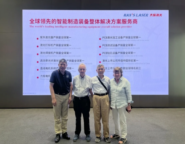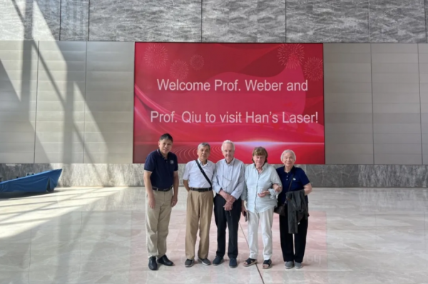 10月3日,大族激光全球智造中心迎來了一場意義(yi) 非凡的科技對話——被譽為(wei) “德國固體(ti) 激光之父”的Prof. Dr. Horst Weber教授偕夫人,與(yu) 原華中科技大學激光研究所所長、我國激光技術奠基人之一的邱軍(jun) 林教授及夫人陳珠芳女士,共同蒞臨(lin) 大族激光參觀指導。這場跨越十六年的重逢,不僅(jin) 是兩(liang) 位激光領域泰鬥的再聚首,更是中德激光技術交流史上濃墨重彩的一筆。