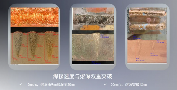 可實現焊接速度與(yu) 熔深雙重突破。在15mm/s速度下,熔深由9mm大幅加深至20mm;在30mm/s速度下,熔深突破12mm。高效應用於(yu) 核廢料儲(chu) 罐、大型水冷板等重型焊接場景。