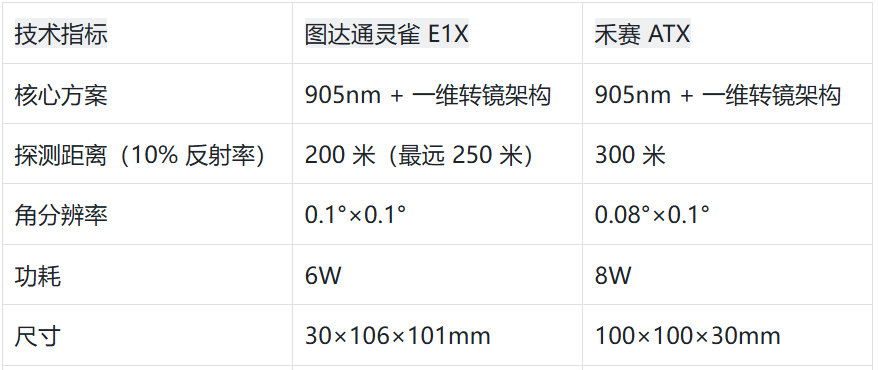 值得注意的是,靈雀E1X作為(wei) 圖達通首款905nm量產(chan) 機型,其6W低功耗、3600元成本控製等優(you) 勢,與(yu) 其此前1550nm產(chan) 品相比實現顯著突破,而這些技術特性恰與(yu) 禾賽AT係列的核心競爭(zheng) 力高度吻合。