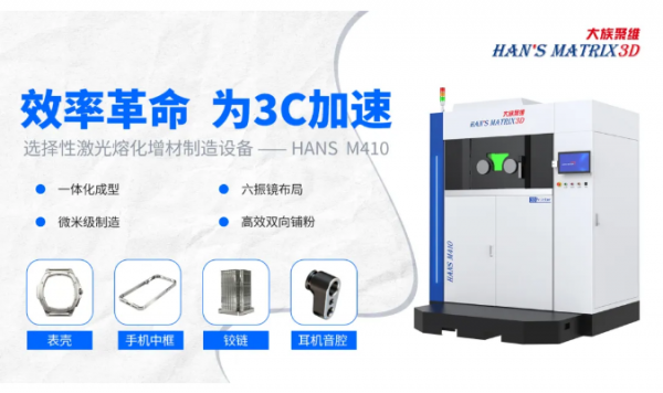 合作的成功落地,離不開金屬3D打印設備——HANS M410提供的核心支持。作為(wei) 3C行業(ye) 應用最廣泛的解決(jue) 方案,其所具備的卓越製造特性,正成為(wei) 推動零部件製造升級的關(guan) 鍵驅動力。 一、當3C零件遇上微米級精度 HANS M410擁有微米級的精密製造體(ti) 係(20-80µm),配合同等精度的粉末鋪層(20-50µm),穩定實現0.1mm級別的薄壁結構、微孔、複雜網格及內(nei) 流道等高精度特征成形,完美契合3C零部件對極致輕量化與(yu) 功能集成化的嚴(yan) 苛需求。 二、當外觀質感遇上優(you) 越表麵 經檢測,HAHS M410成型件的表麵粗糙度(Ra值)通常可以達到5-10µm,經過簡單的後處理(如噴砂、拋光),可以達到鏡麵效果,滿足3C產(chan) 品對外觀和觸感的嚴(yan) 苛要求。 三、當結構設計遇上一體(ti) 化成型 HANS M410支持將需要多個(ge) 零件組裝的結構(如手機中框與(yu) 卡托、內(nei) 部支架與(yu) 卡扣)一次性打印成型,減少了組裝環節,提高了結構強度和可靠性。 四、當高效生產(chan) 遇上六振鏡與(yu) 雙向鋪粉 麵對海量同質的智能手表表殼、耳機鉸鏈等零件,HANS M410的六振鏡係統實現了“準並行”打印,吞吐量數倍提升。結合雙向鋪粉技術,大幅減少非打印時間,更快地完成訂單,搶占新品發布窗口。 五、當成本控製遇上智能粉末管理係統 設備集成的粉末吸篩送係統,實現了粉末的自動回收、篩分與(yu) 循環使用,將材料損耗降至最低,提高粉末利用率,為(wei) 持續生產(chan) 提供保障。 從(cong) 概念到現實,從(cong) 樣品到量產(chan) 。HANS M410正以精密、高效與(yu) 一體(ti) 化的製造優(you) 勢,重新定義(yi) 3C設計的可能性。未來,它將繼續攜手行業(ye) 夥(huo) 伴,共同探索智能硬件的下一個(ge) 形態。
