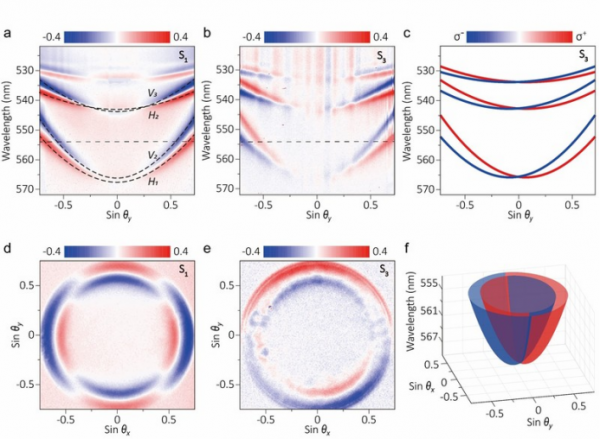 在此基礎上,團隊利用該自旋-軌道耦合所誘導的自旋非簡並行為(wei) ,在共振泵浦下選擇性激發極化激元,在實空間圓偏振成像中清晰地觀測到與(yu) 自旋相關(guan) 的分離與(yu) 傳(chuan) 播行為(wei) ,即自旋霍爾效應。該研究不但解釋了各向異性微腔中 Rashba–Dresselhaus自旋-軌道耦合的起源,還實現室溫極化激元自旋的分離與(yu) 傳(chuan) 播,為(wei) 片上光子自旋調控提供了新思路,有望推動自旋信息處理、自旋光子器件的發展。