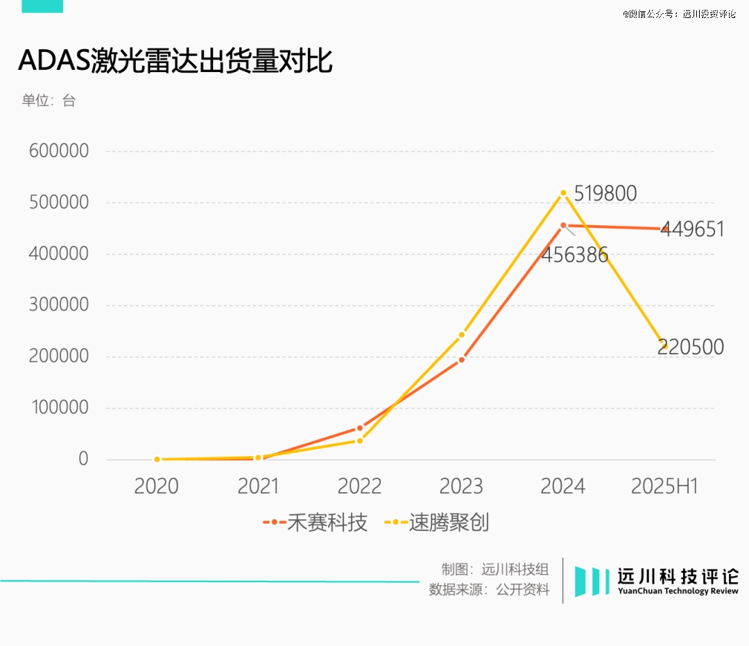 從(cong) 去年出貨量來看,禾賽和速騰聚創的ADAS激光雷達出貨量占比,都超過90%。