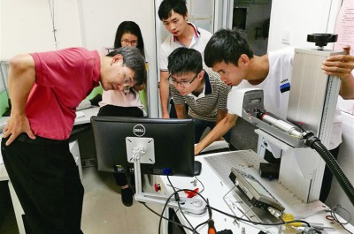 洪明輝院士(左一)在溫大實驗室指導搭建激光彩色標刻係統 受訪者供圖溫都記者 朱斌12月6日,中國科協將為(wei) 海智計劃溫州工作基地...