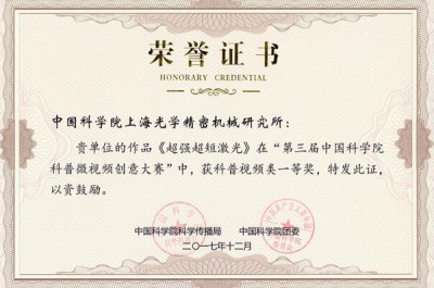 上海光機所原創科普微視頻“超強超短激光”榮獲中國科學院科普微視頻創意大賽一等獎