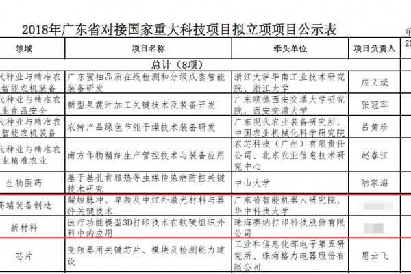 2018年廣東省對接國家重大科技項目,激光和3D打印項目各獲得1000萬資金