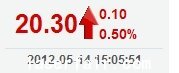 今 開: 20.30 成交量: 26784手 振 幅: 3.42% 最 高: 20.69 成交額: 5452.35萬(wan) 換手率: 1.31% 最 低: 20.00 總市值: 60.42億(yi) 市淨率: 4.98 昨 收: 20.20 流通市值: 41.56億(yi) 市盈率 TTM : 36.21...