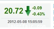 今 開: 20.85 成交量: 46882手 振 幅: 3.75% 最 高: 21.35 成交額: 9782.47萬(wan) 換手率: 2.29% 最 低: 20.57 總市值: 61.68億(yi) 市淨率: 5.08 昨 收: 20.81 流通市值: 42.42億(yi) 市盈率TTM:...