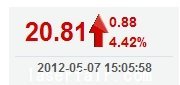 今 開: 19.81 成交量: 66223手 振 幅: 6.57% 最 高: 21.08 成交額: 13669.11萬(wan) 換手率: 3.23% 最 低: 19.77 總市值: 61.94億(yi) 市淨率: 5.10 昨 收: 19.93 流通市值: 42.60億(yi) 市盈率 TTM : 37.12...