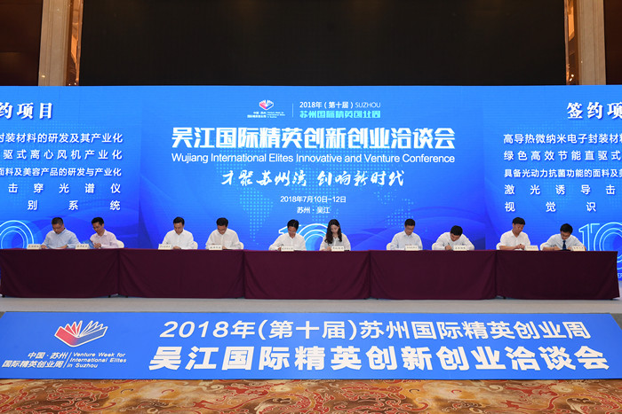 7月11日,2018第十屆蘇州國際精英創業周----吳江國際精英創新創業洽談會在吳江賓館隆重舉行,同期舉行了中國創新創業大賽軍民融合專業賽(蘇州賽區)啟動儀式和發布會。