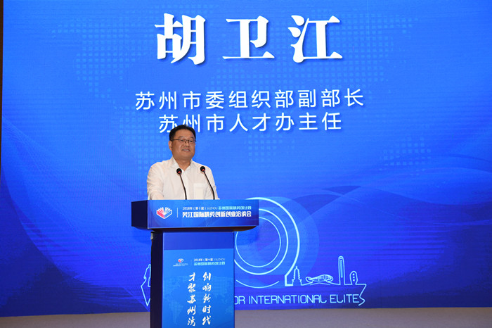 蘇州市組織部副部長、蘇州市人才辦主任胡衛江致辭。
