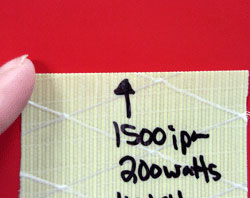 這塊0.005" 厚的滌綸帆布樣品使用100W的激光 使用200W的CO2激光器,切割0.015" 厚的複合帆布樣品進行切割,