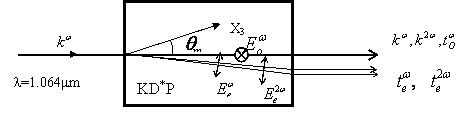 圖7-6、圖7-7則表示了在KD*P晶體(ti) 中實現第II類相位匹配過程中,基波、二次諧波光在晶體(ti) 內(nei) 外的電場、波矢、光線、相位匹配角及走離角等的示意圖。