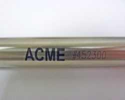 對於(yu) 這一應用,我們(men) 使用Synrad 60W的激光器在鋯合金杆上打上商標和編號,激光器配備有FH Flyer打標頭、125 mm HP(高放大率)聚焦鏡和Synrad專(zhuan) 業(ye) 的WinMark Pro打標軟件。這樣可得到180 mm (0.007")的光斑大小,因為(wei) 高清晰度的標識需要大功率密度的激光來打標。