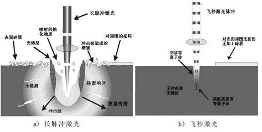 長脈衝(chong) 激光和飛秒激光加工效果對比