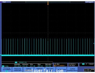 從(cong) 長期監控效果來看,D2.fs激光器的功率穩定性都相當不錯,幾乎沒有變化。上圖我們(men) 看到的是長期的平均功率波動情況,那麽(me) 脈衝(chong) 之間的能量對比的高頻穩定性又如何呢?