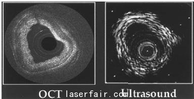 圖1為(wei) OCT影象和超聲波檢測結果進行對比,很顯然,OCT的分辨率更高,影象更清晰。