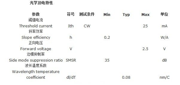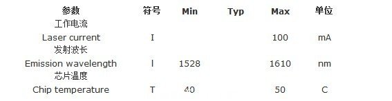 1550 納米及DWDM 波長 2.7Gb/sec, 200 km 無製冷分布反饋激光器芯