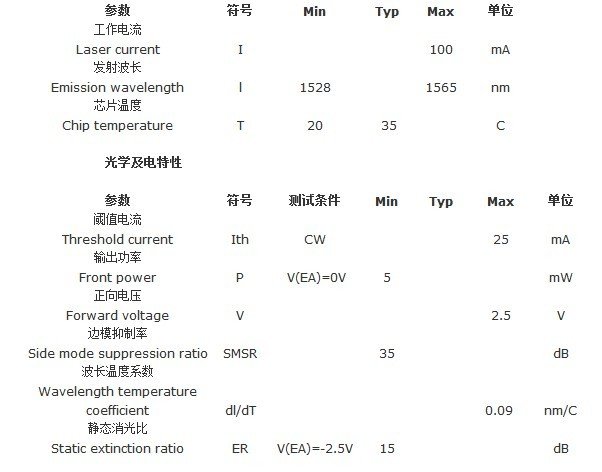 · 可支持性能為(wei) 10 Gb/sec 位率, 20 到 35 °C 工作溫度,傳(chuan) 輸距離可達80 km (1600ps/nm)