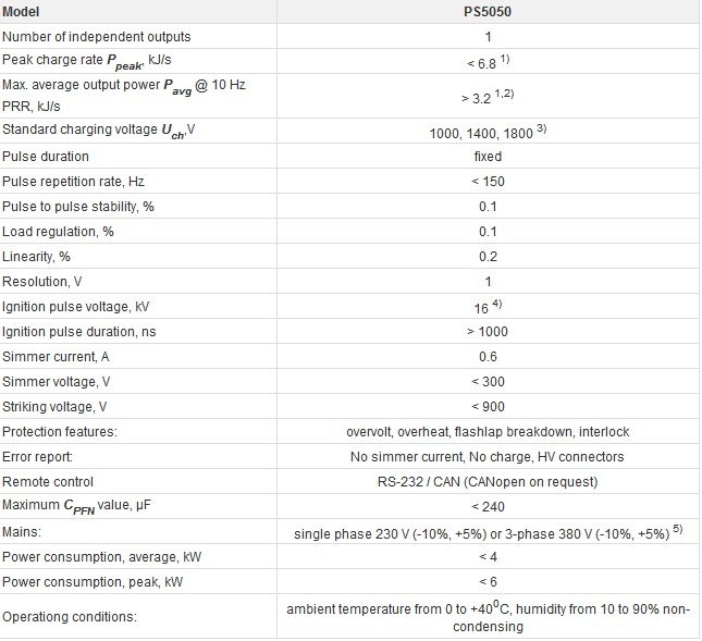 PS5050 model flashlamp driver is designed for flashlamp-pumped lasers and establishes itself as an updated version of PS5010 driver. PS5050 features microprocessor control and back illuminated LCD display where all output parameters of power supply are conveniently displayed.