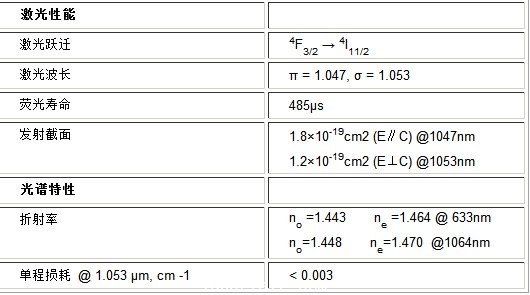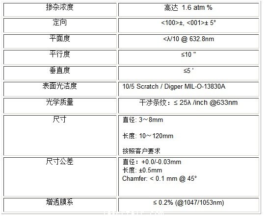 北京捷普提供的Nd:YLF 晶體(ti) 的規格品質: