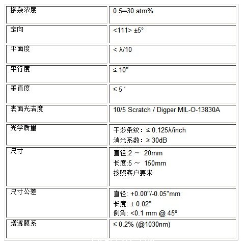 北京捷普Yb:YAG晶體(ti) 的規格: