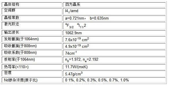 Nd:GdVO4晶體(ti) 的優(you) 點: u大的受激發射截麵; u高的吸收係數和寬的吸收帶寬,對泵浦波長的依賴性小; u熱導性能比Nd:YVO4還要好; u激光閾值低; u激光輸出效率高; u激光損傷(shang) 閾值高; u激光輸出偏振性好。