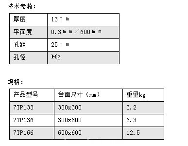 特點: 采用優(you) 質鋁合金精加工而成,平麵度高,重量輕,易搬動 特殊表麵處理,美觀,耐磨 表麵陣列M6螺紋孔,孔距25mm,方便安裝固定器件