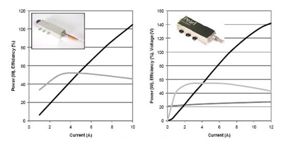 圖1.LI和效率曲線顯示出單一發射源二極管激光器在nLight公司的發展。這樣的一個(ge) 裝置在10 W光功率以超過60%效率運行,FIT 率為(wei) 1200(90%可信等級).