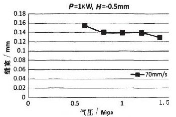 從(cong) 圖7可以看出,隨著氣壓的增大,切縫寬度緩慢遞減,這是由於(yu) 在切割過程中,高壓氣體(ti) 把熔融狀態的金屬吹出,達到切割的目的,吹除過程中伴隨著能量的流失,達到對板材的冷卻作用,隨著氣壓的增大,冷卻的速度也隨之增大,熔化層再固化加快,割縫隨之緩慢減小。